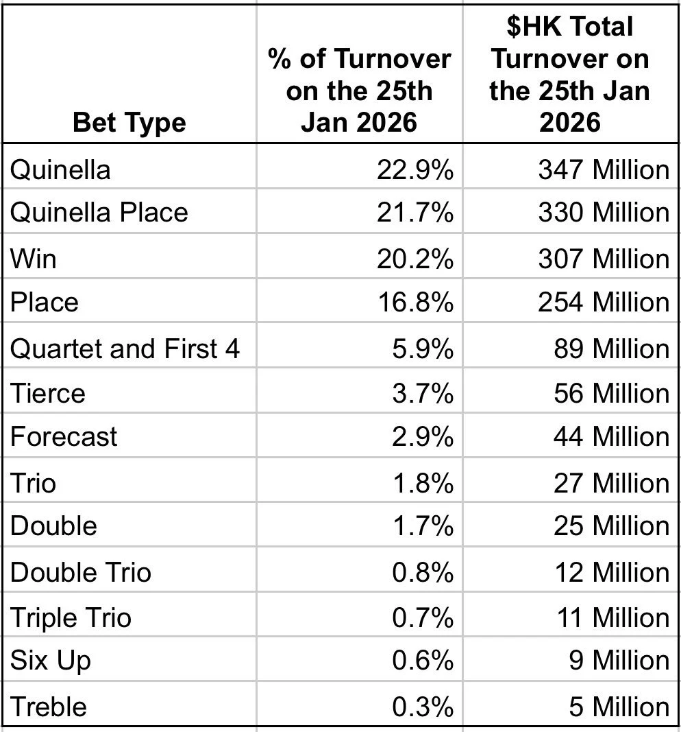 25th of January 2026 Betting Turnover in the HKJC horse racing.
